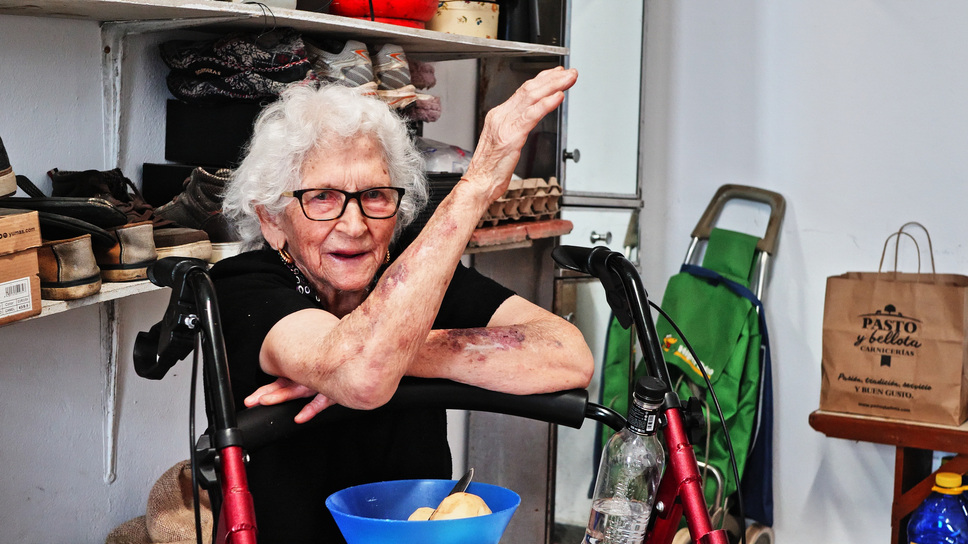 Isabelita, nació en una casa cueva en el año 1932, prácticamente en la frontera entre Agaete y Gáldar. Recuerda infinidad de coplas, romances, adivinanzas y cuentos. Ya sólo eso es un tesoro, pero sus vivencias y cómo es capaz de transmitirlas lo son aún más.